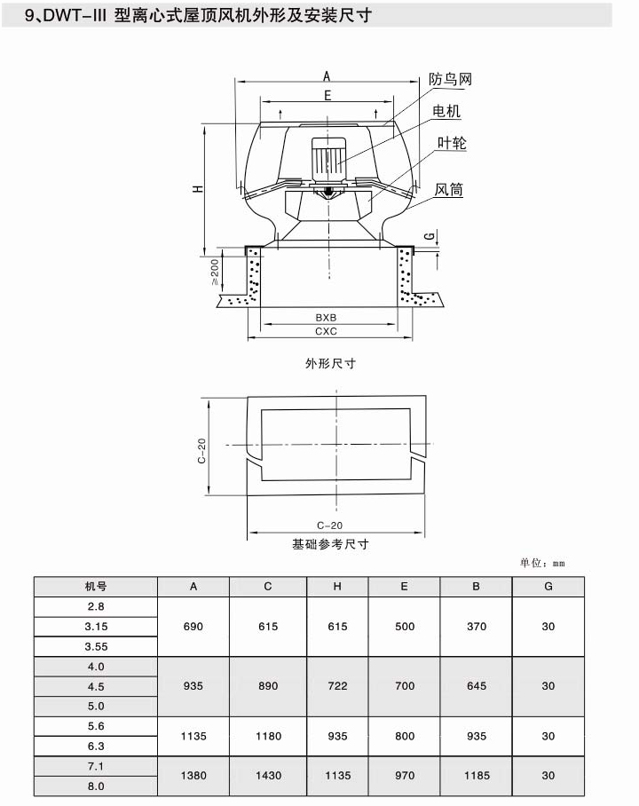 DWT-Ⅱ、III型離心式屋頂排風(fēng)機